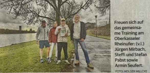 - Donnerstags wird am Rhein in Oberkassel von 18:00 bis 18:45 ein Lauf-Coaching angeboten. Treffpunkt ist am Rondell am Rhein, Am Magdalenenkreuz. Die Laufcoaches sind sehr erfahrene Läufer: Nikolaus Milz, Jürgen Mirbach, Colin Keuker-Sample und Stefan Pabst